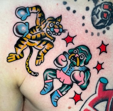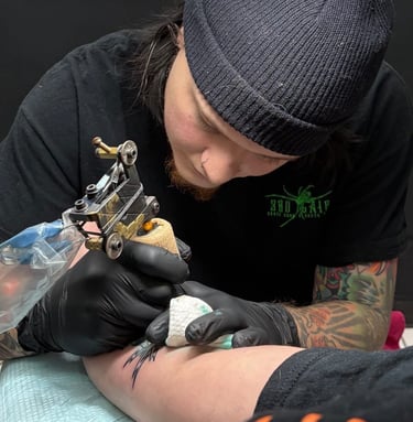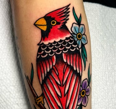 Griffin has been tattooing since 2022, primarily working in American traditional with bright colors. He also likes working in other styles such as fineline, and neotraditional.