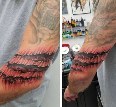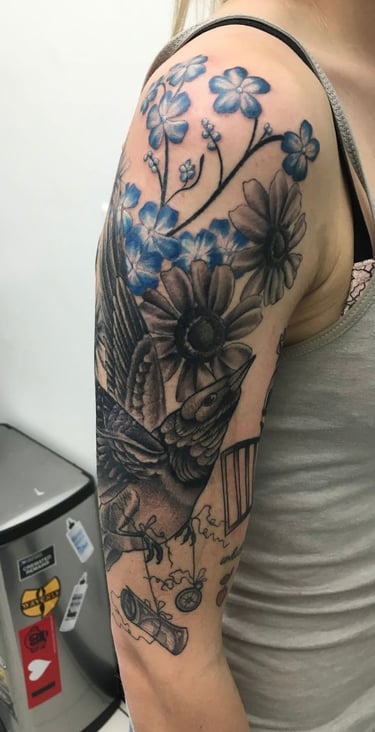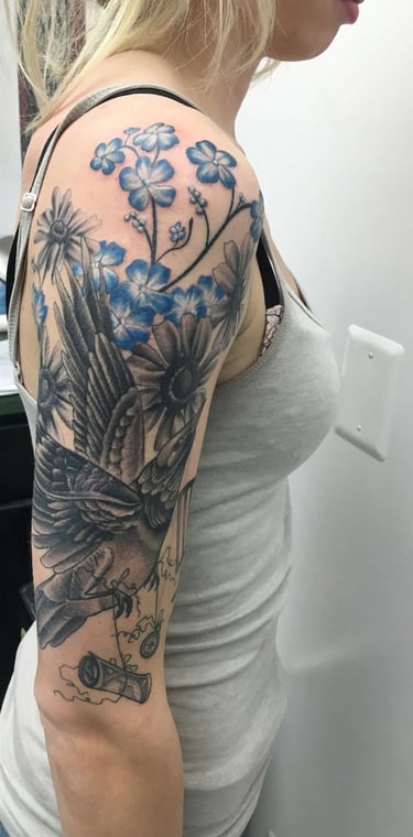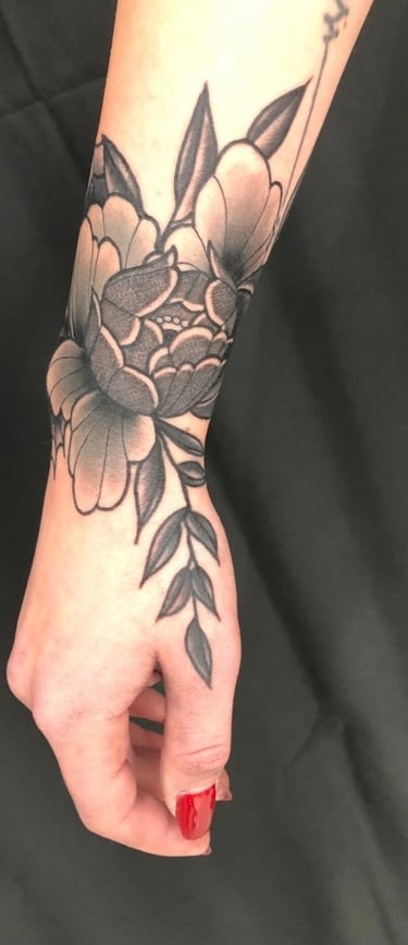 I've been tattooing and piercing since 2005. Over the years, I've developed a strong focus on cover-ups, black and grey realism, and anything floral. I also enjoy tattooing in all of the traditional styles and love, love, love tattooing cartoon characters.