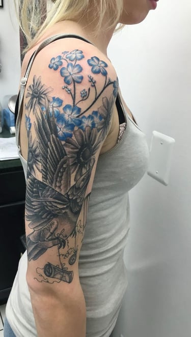 My goal is always to create art that feels personal and meaningful, while giving my clients a comfortable and positive experience. I love my job and I'm grateful to spend my days turning people's ideas into lasting artwork!